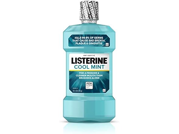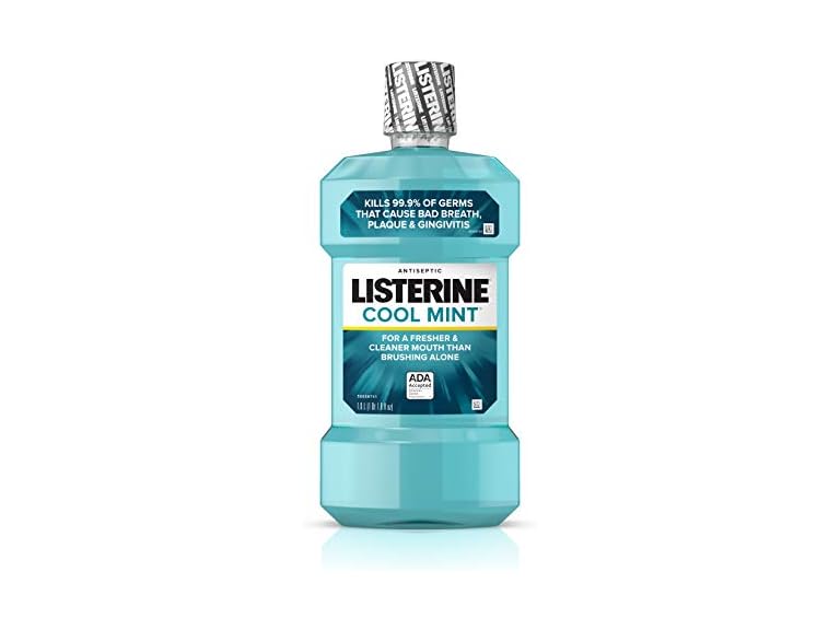 - 1-liter bottle of Listerine Cool Mint Antiseptic Mouthwash kills 99.9% of germs that cause bad breath, plaque and gingivitis for a fresher and cleaner mouth than brushing alone