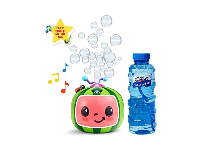 - INCLUDES: The No Spill Cocomelon Bubble Machine, An exerpt from the Cocomelon Wheels on the Bus song and 16 oz of non toxic bubble solution. The best part is there are two modes: an option to play the song wtih bubbles and to only make bubbles without the song. The perfect first bubble toy for any age and so easy to use that any baby, toddler and kid will be delighted every time.