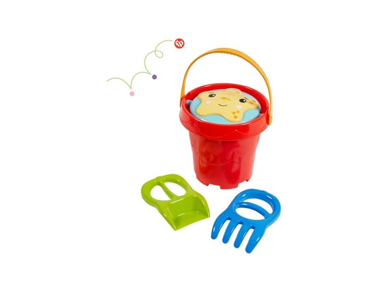 - LESS-MESS BEACH BUCKET: The Fisher-Price Beach Bucket features a less-mess lid which is designed to keep water in and frustration out.