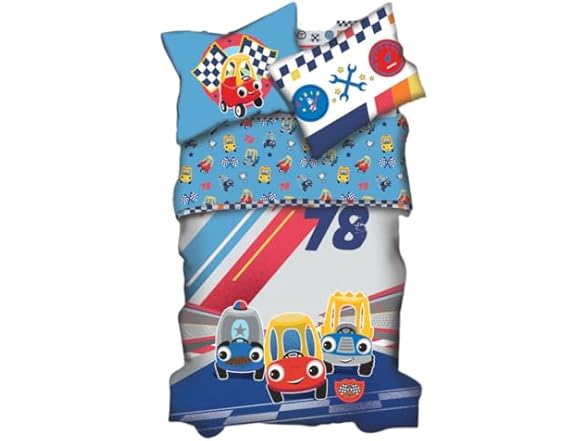 - LITTLE TIKES RACING DESIGN: Bring playful racing dreams to life with this Little Tikes comforter for toddlers. Featuring the iconic friendly Little Tikes car characters, a checkered track, and vibrant racing graphics, it adds excitement to bedtime and turns any toddler’s room into a fun-filled racing zone.