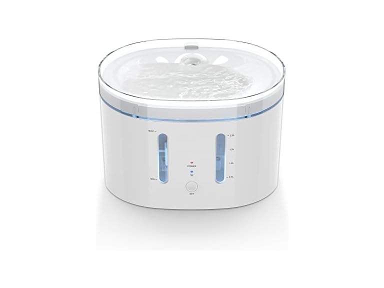 - Ultra Quiet Fountain - Equipped with the latest low power consumption pump, which runs super quietly (<30db). The low noise water dispenser for cats and dogs is a great way to help your pets stay calm and hydrated at night.
