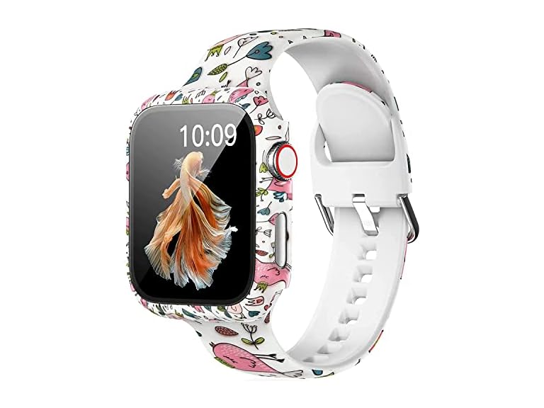 - (1) LKEITY Compatible for Apple Watch Band 45mm with Case Women,41mm 44mm 42mm 40mm 38mm Screen Protector Cover and Floral Printed Sport Silicone Band Soft Pattern Strap for iWatch Series SE 8 7 6 5 4 3