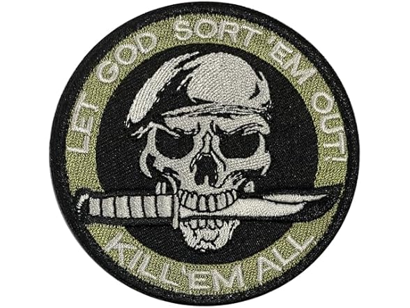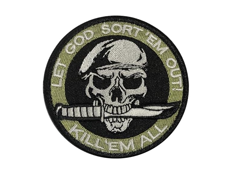- (1) lkLiovaha Wearing Beret and Mouth Holding a Knife Skull Head Warrior Embroidered Military Patches Badges with Hook and Loop Fastene (Color: Green)