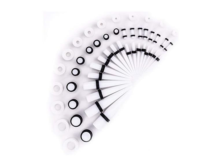 - (1) LLGLTEC Ear Stretching Kit 50 Pieces 14G-00G Ear Gauges Expander Set Acrylic Tapers and Plugs & Silicone Tunnels Body Piercing Jewelry Set (Transparent)