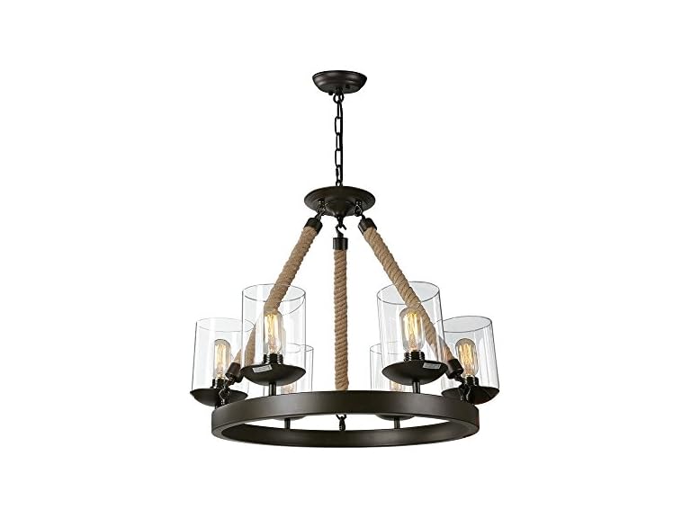 - Inspired by natural element, we add jute rope into this rustic chandelier. The natural jute rope allows you to escape from the bustling city and brings you back to the nature. Fits well with living room, dining room, bedroom, farm house, bar, etc.
