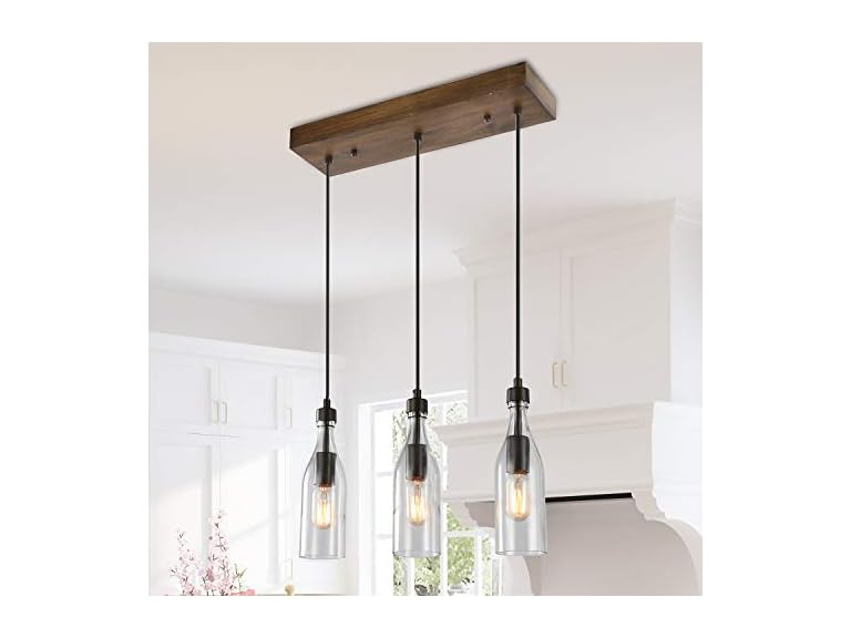 - LNC Wooden Pendant Lights, 3-Height Adjustable Bottle Glass Pendant Lighting, Clear Glass Bottle Inspired Lighting Fixture