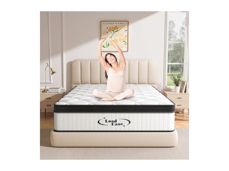 - Comfortable Support for Restful Sleep - The LoadEase 60" W x 80" D x 12" queen mattress size 12 inch combines memory foam, multi-layer foam, and an independent spring support system. This blend ensures even weight distribution from head to toe, providing back/neck support that allows your muscles to fully relax for a restful night’s sleep