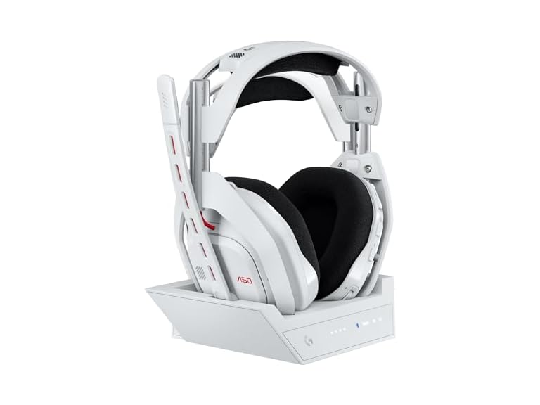 | Logitech G Astro A50 Omni-Platform Wireless Gaming Headset + Base Station for PS5, Xbox, PC: PLAYSYNC Audio Switcher, <16 bit/48kHz (Console), <24 bit/48 kHz (PC), 2.4GHz & BT White |