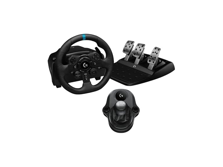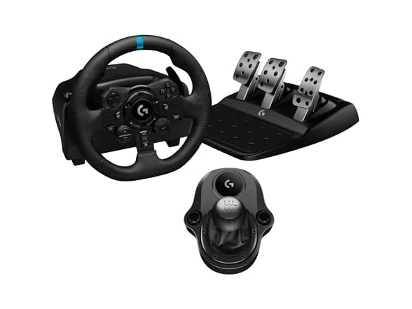 - (1) Logitech G923 Racing Wheel and Pedals, TRUEFORCE Force Feedback + Logitech G Driving Force Shifter - Real Leather, For PS5, PS4, PC, Mac - Black