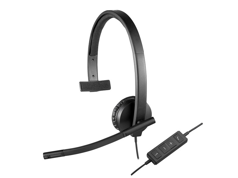 (1) Logitech H570e Wired Headset, Mono Headphones with Noise-Cancelling Microphone, USB, In-Line Controls with Mute Button, Indicator LED, PC/Mac/Laptop - Black