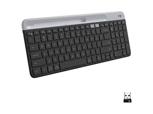 | Logitech K585 Multi-Device Slim Wireless Keyboard, Built-in Cradle for Device; for Laptop, Tablet, Desktop, Smartphone, Win/Mac- Graphite |
