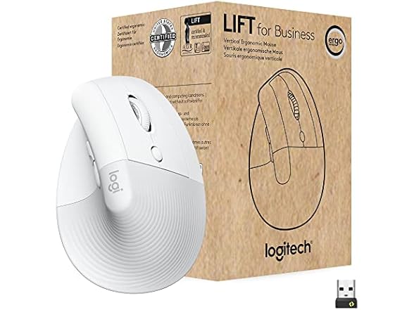 Logitech Lift for Business, Vertical Ergonomic Mouse, Wireless, Bluetooth or Secured Logi Bolt USB, Quiet clicks, Globally Certified, Windows/Mac/Chrome/Linux - Off White