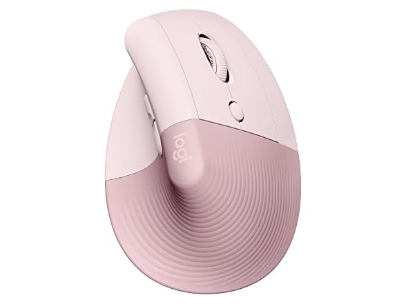 - (1) Logitech Lift Vertical Ergonomic Mouse, Wireless, Bluetooth or Logi Bolt USB receiver, Quiet clicks, 4 buttons, compatible with Windows/macOS/iPadOS, Laptop, PC - Rose