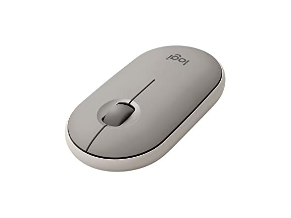 - (1) Logitech Pebble Wireless Mouse with Bluetooth or 2.4 GHz Receiver, Silent, Slim Computer Mouse with Quiet Clicks, for Laptop/Notebook/iPad/PC/Mac/Chromebook - Sand