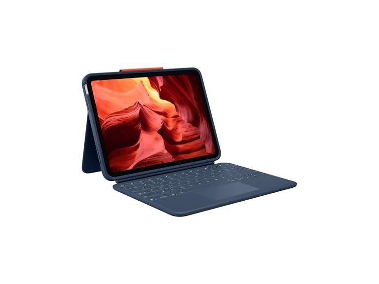 (1) Logitech Rugged Combo 4 Touch Keyboard Case with Trackpad and Smart Connector for iPad (10th Generation) - Classic Blue (920-011130)