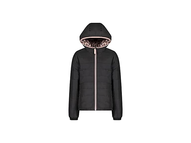 - (1) London Fog Girls Toddler Midweight Fleece Lined Jacket, Black Reversible Pink Cheetah, 3T