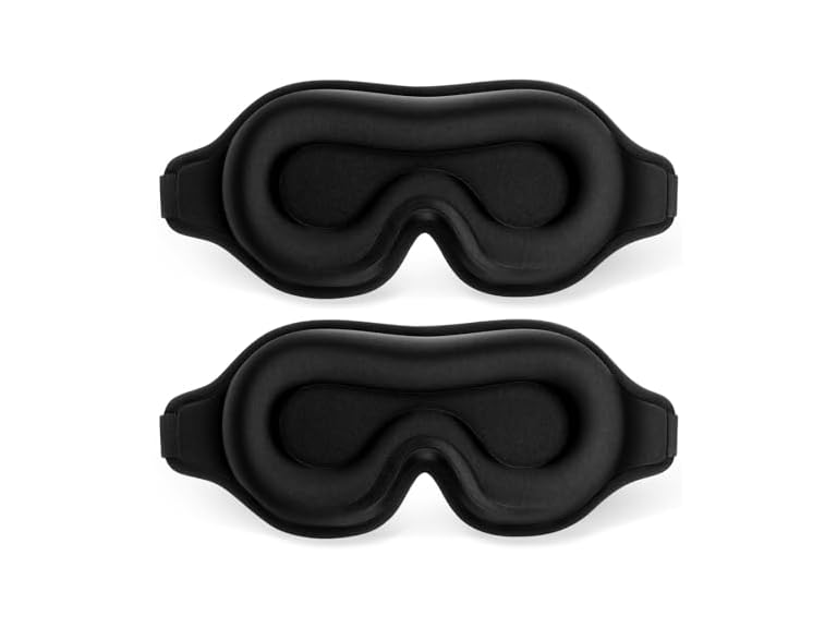 - (1) FlyCoco Sleep Mask for Sleeping, Zero Eye Pressure 3D Contoured Cup 99% Black Out Eye Mask, Soft Breathable Lightweight Sleeping Masks with Adjustable Strap, Eye Cover for Yoga Traveling(Black 2pack)