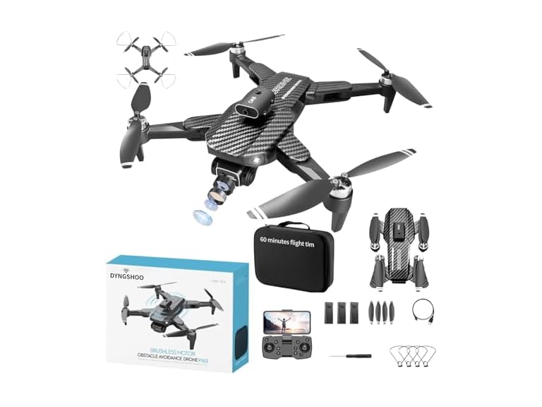 - High-tech Outdoor Performance: The exceptionally powerful brushless motors and three batteries for a total flight time of 60 minutes ensure enhanced stability and longer flight duration, allowing ample time to compose the perfect shots. The maximum remote control distance reaches an impressive 1000 meters.