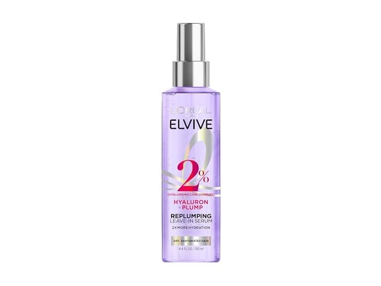 (1) L'Oreal Paris Elvive Hyaluron Plump Moisture Plump Hair Serum for Dehydrated, Dry Hair with Hyaluronic Acid Care Complex, Paraben-Free, 4.4 Fl Oz