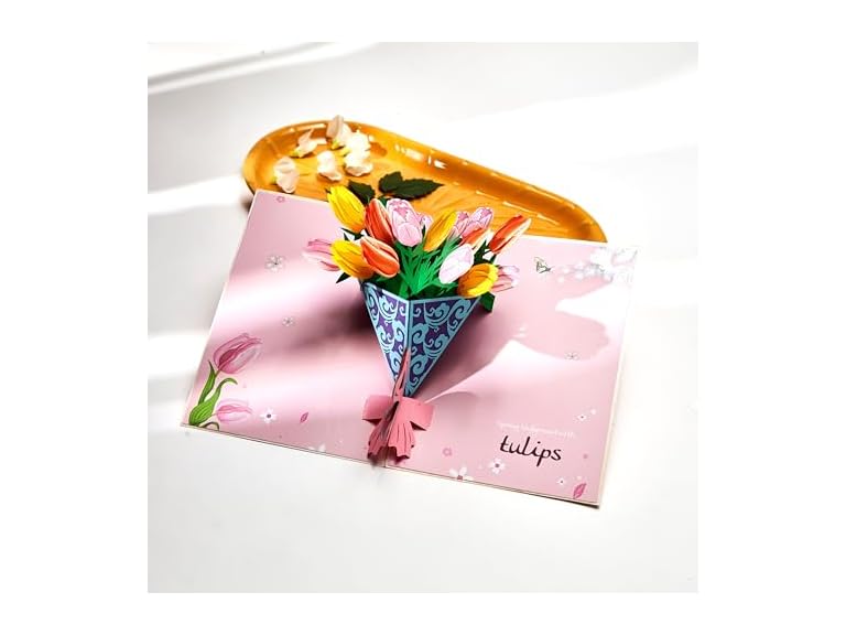 - (1) LoveEcho Pop Up Birthday Card, Tulip Bouquet Pop Up Card, 5x7-3D Greeting Card with Note Card & Envelope for Birthday, Anniversary, Thank You, Thanksgiving, Christmas, Get Well, Thinking of You, Congrats, or Any Occasion for Lover, Her, Women, Wife, Mom, Grandma, Daughter, Sister, Girlfriend