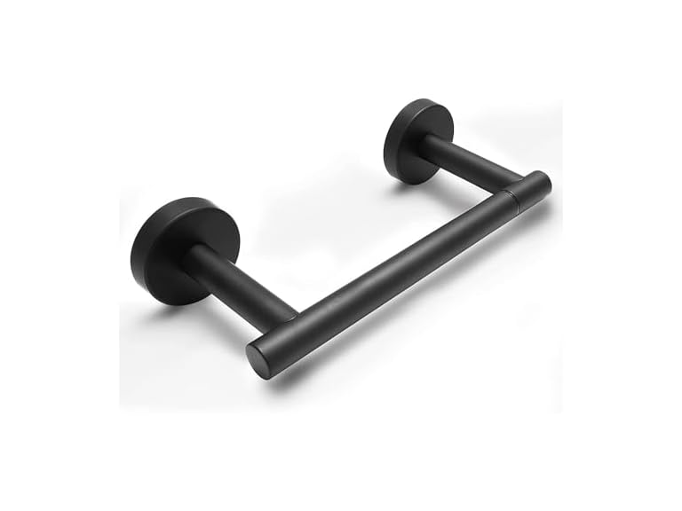 - 【DOUBLE POST PIVOTING DESIGN】This double post pivoting design not only ensures that you won't drop it when you use it, but also makes it easy for you to make toilet paper substitutions. At one end of the toilet paper holder you can lift the holder upwards and then you can easily replace the toilet paper.