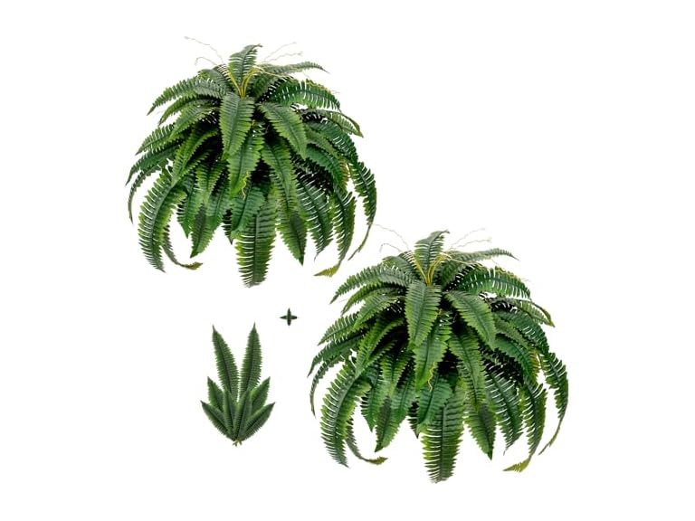 - Perfect Size - Each faux fern bush stands about 23 inches tall and expands up to 45 inches wide when fully fluffed, creating a lush, full look that instantly fills hanging planters, garden pots, or decorative baskets. The generous size makes it ideal for indoor and outdoor spaces alike.
