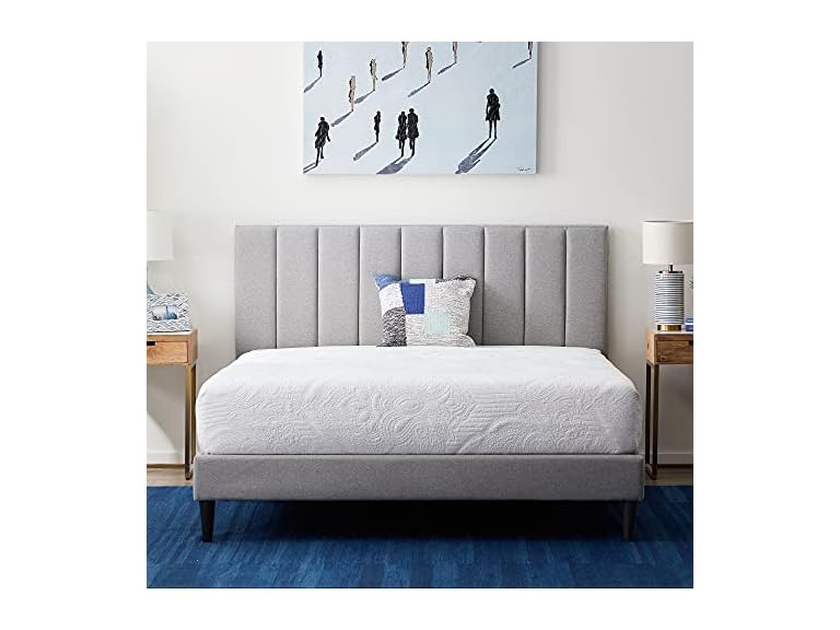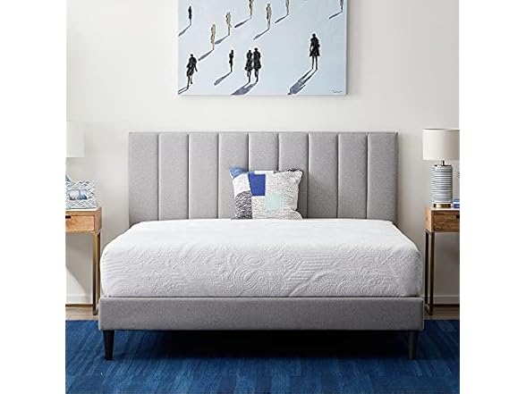 - STYLISH DESIGN – The light gray headboard comes with vertical lines, providing stylish channels with padded foam and polyester for a cushioned texture to any Queen bed frame.