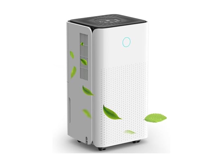 - 【Easy To Move & Maintain】Considering that most bulky dehumidifiers are difficult to move, this unit is designed with 360° rotatable wheels and ergonomically designed handles, meaning that you can move it around easily without scratching the floor. Meanwhile, a detachable and washable filter can preserve fresh and clean air quality.