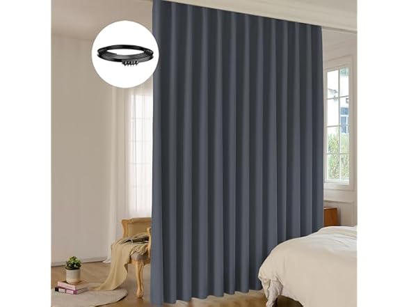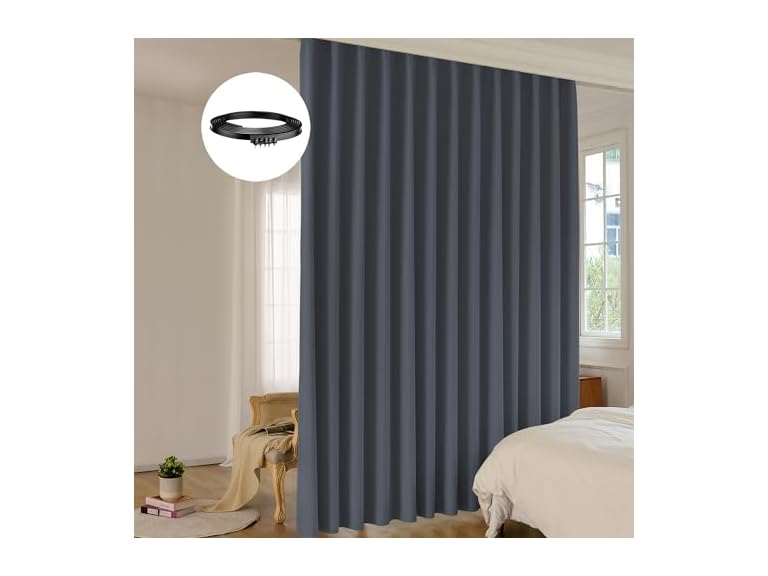 - (1) LuminBarrier Room Divider Curtain Sets with Bendable Ceiling Track, 95% Blackout Total Privacy Ceiling Track Curtains Floor to Curtains Track Kits 10 ft Wide x 9 ft Tall, Dark Grey, 1 Panel