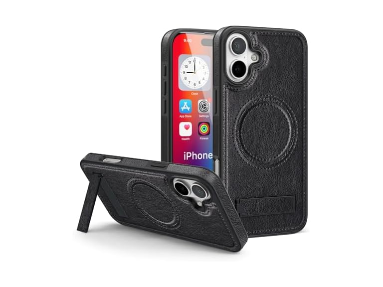 - (1) Lunivop for iPhone 16 Plus Case 2024 [Compatible with Magsafe ] Wireless Charging Leather Stand Magnetic Kickstand Rugged Protection for iPhone 16 Plus Phone Cases Best Black