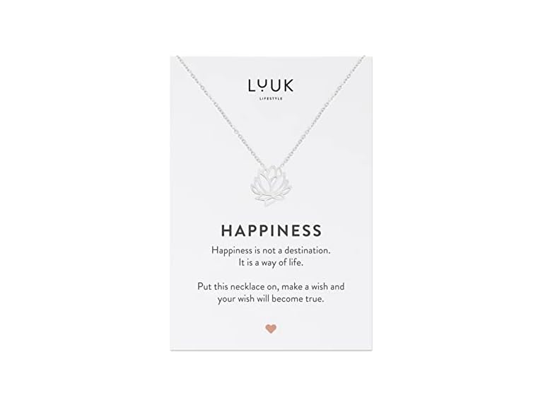 - (1) LUUK LIFESTYLE Stainless steel necklace with Lotus flower pendant and HAPPINESS gift card, Asian Zen floral design, chic and elegant jewellery for relaxation and yoga, wellness lucky charm, silver