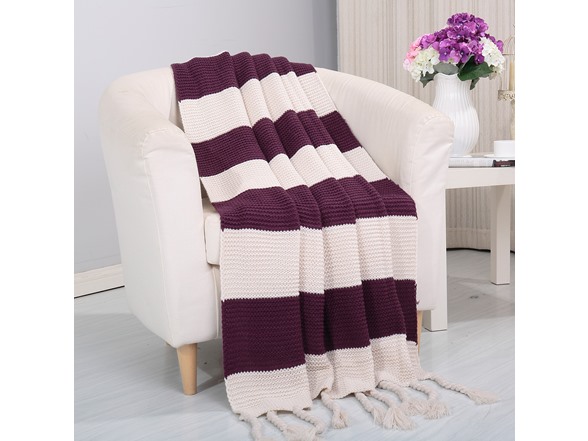 - (1) Luxury Home Vintage Stripe Fluffy Throw Blanket 50 x 67 Inches – Super Soft Cashmere-Like Acrylic Blanket with Fringe – Cozy All-Season Throw for Couch, Bed, Camping & Travel - Choose Color