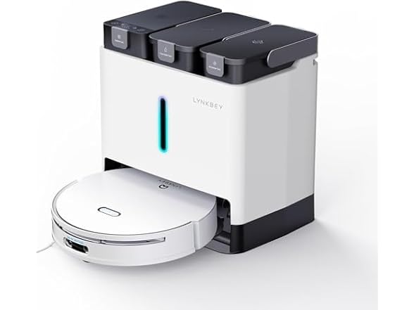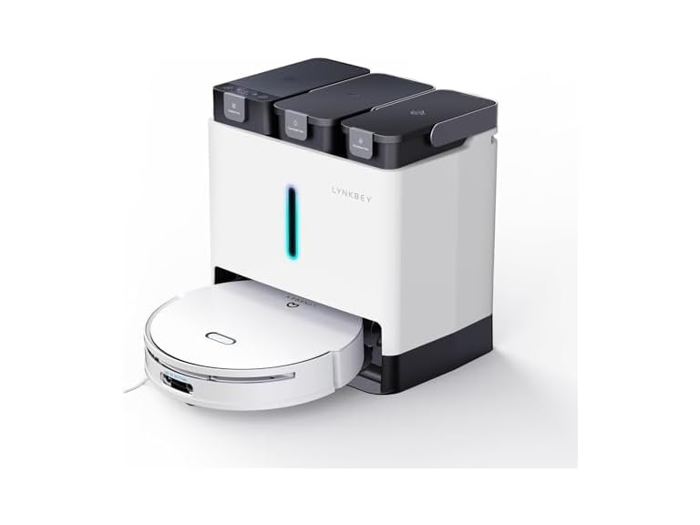 - 🏆【15-IN-ONE Multifunctional Dock】A completely auto-maintenance cleaning system that frees your hands. LYNKBEY M20Pro has a 15-IN-ONE Multifunctional Dock, which will return to the station and automatically empty the dustbin or refill the tank after vacuuming. It will also automatically wash the mop heads and dry them with hot air. All you have to do is relax and let it take care of the mess.