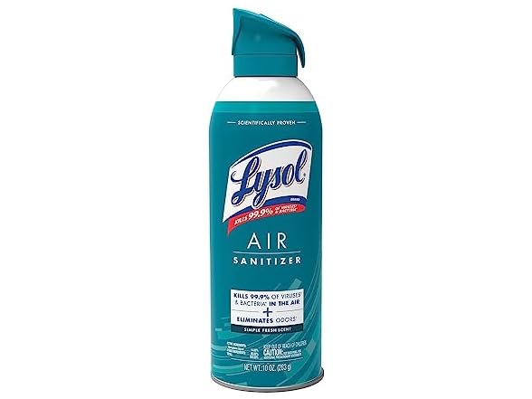 - (1) Lysol Air Sanitizer Spray, For Air Sanitization and Odor Elimination, Simple Fresh, 10 Fl. Oz