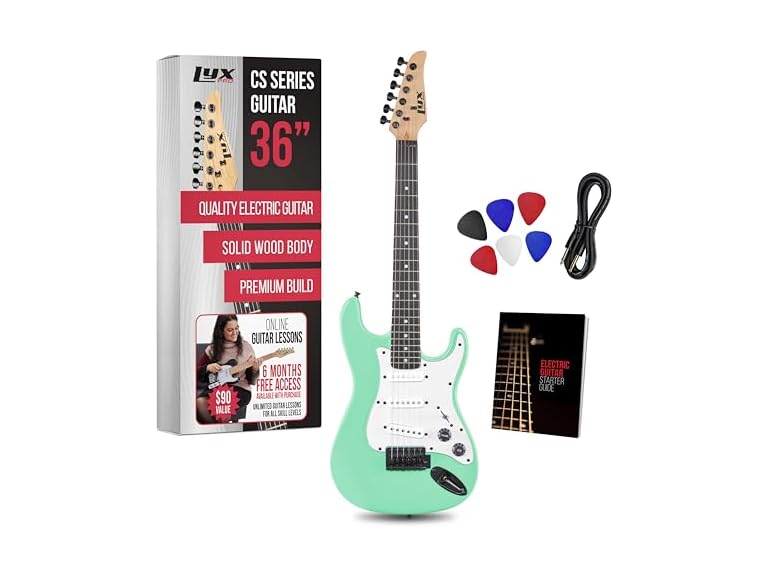 - (1) LyxPro CS 30” Electric Guitar Kit for Beginner, Intermediate & Pro Players with Guitar, Amp Cable, 6 Picks & Learner’s Guide | Solid Wood Body, Volume/Tone Controls, 5-Way Pickup