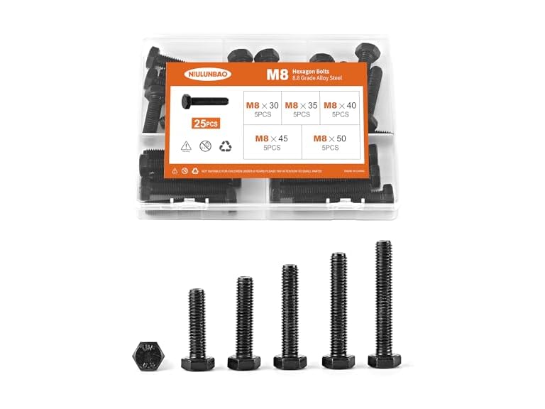 - Package Included: M8 x 30mm(5PCS), M8 x 35mm(5PCS), M8 x 40mm(5PCS), M8 x 45mm(5PCS), M8 x 50mm(5PCS); Total: 25PCS.