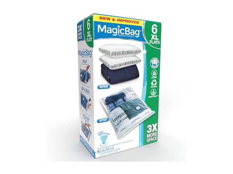 - FREE UP MORE SPACE - MagicBag Space Saver bags create 3X more space in your closet, under your bed, or in storage bins by compressing your linens