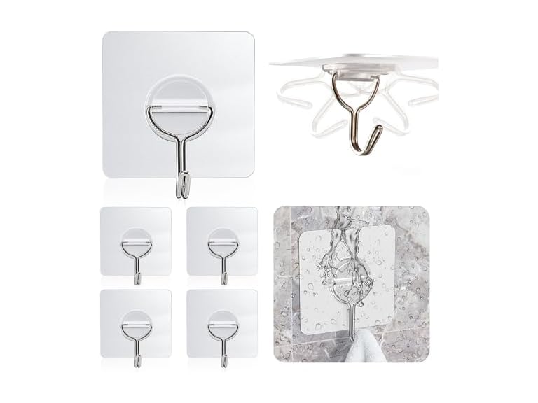 - 【REUSABLE HOOKS】These hooks are resistant to moisture and water and can be used over and over again. If you want to change the hook position, simply remove the hook, wash the transparent hook with water, and dry it with a hair dryer to restore its adhesive strength. It is an economical and environmentally friendly product