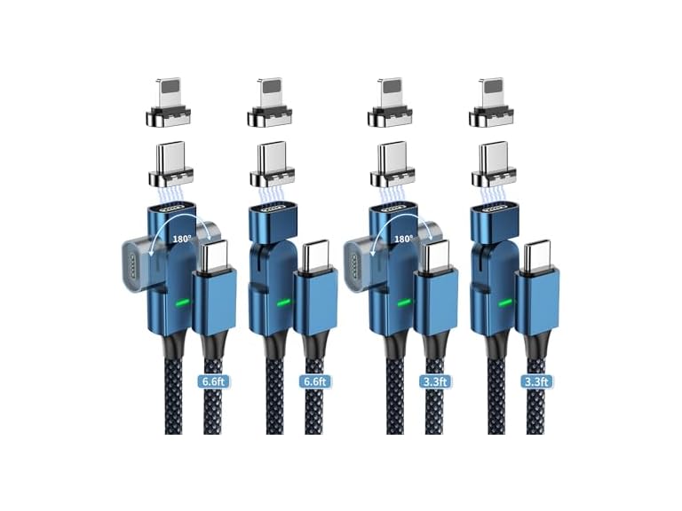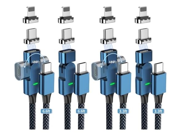 - (1) Magzurnd Magnetic Phone Charging Cable, 180° Rotatable USB C Charger Nylon Braided Cable - PD 100w 5A Charging - for iPhone 15/14/13 Series, MacBook Pro(6.6ft 2pcs and 3.3ft2pcs)
