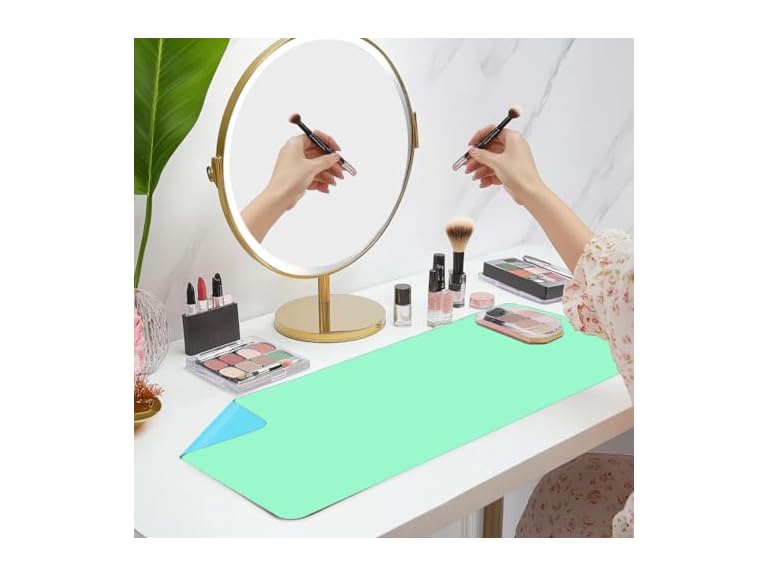 - MULTIFUNCTIONAL DESIGN:31.50" x 15.7",this Makeup Mat is large enough to accommodate your products in place and prevent spills and also keeps your makeup table looking neat and clean!