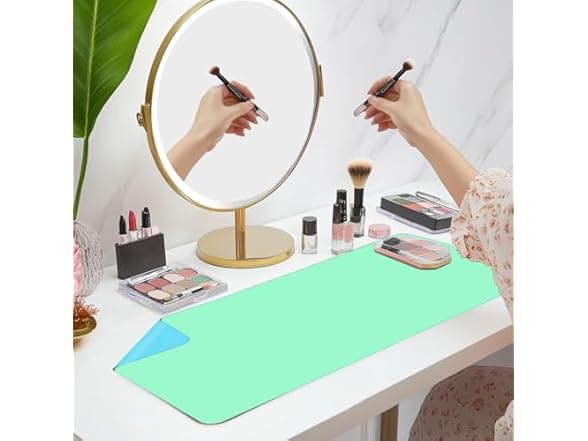 - Makeup Mat for Vanity Top Protector,Craft Mats to Protect Table,Nail Art Table Mat,Dresser Protector Top Vanity Essentials,Vanity Desk Cover Pads,Dresser Cover Top Mats(Green+Blue,31.5" x 15.7")