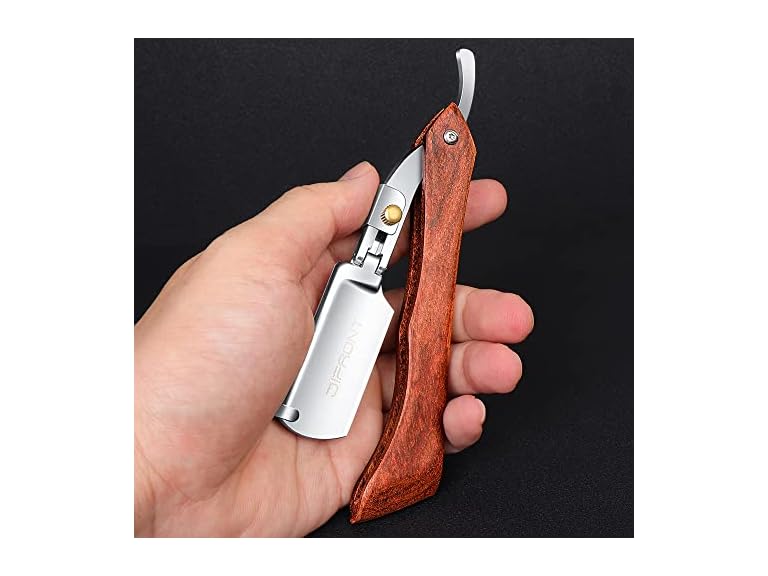 - (1) JIFRONT manual razors redwood handle shaver men's shaving razor professional barber Hair cut razor change blade type shaving knife Professional Straight Edge Razor with 20 both Edge Blades stainless blades
