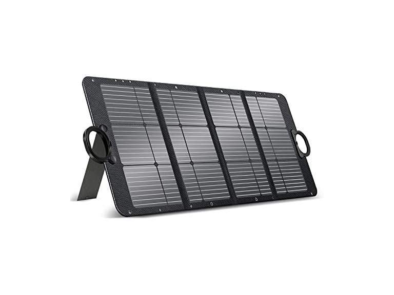 - 【Portable & Adjustable】Manusage foldable solar panels design with a TPE rubber handle, weights only 10.6lb. Folded Dimensions are 21.65” x 16.54” x 1.97”. So it can be carried to wherever you need to use it. Ideal for outdoor, travel, camping, and RV. By adjusting the angle (from 40° to 80°), you can maximize solar coverage using the elastic kickstand. That makes the solar generator can be charged more quickly