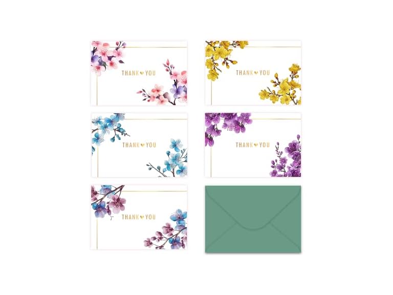 - - [Versatility at its Best]: Our range is vast, accommodating life's moments from wedding thank you cards to graduation thank you cards. And for those moments yet undefined, our blank cards await your personal touch. Each thank you card set comes with 50 envelopes and 50 beautiful floral stickers.