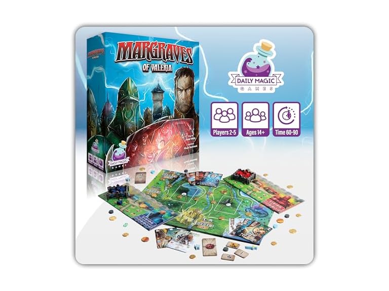 - (1) Daily Magic Gam Margraves of Valeria Board Game ‚Strategic Fantasy Game for 1-5 Players, Card-Driven Mechanics, Stunning Artwork, High Replayability, Perfect for Game Nights