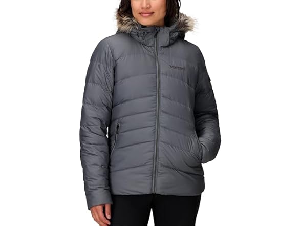 - Marmot Womens Ithaca Jacket 700Fill DownInsulated WaterResistant Coat with ZipOff Hood and Removable Fur Ruff