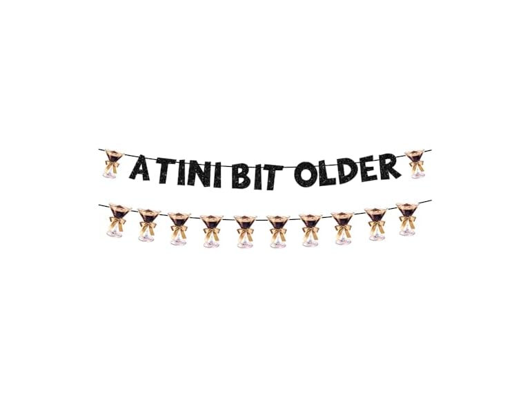- 🍸 Complete Party Kit – Includes 2pcs "A Tini Bit Older" Banner, 9pcs Spiral decoration, 1pcs big cake topper, 12 little Cupcake Toppers and 18pcs balloons – No Need to Buy Separately! 🎉 (Perfect for Martini-Themed Birthdays & Summer Celebrations)