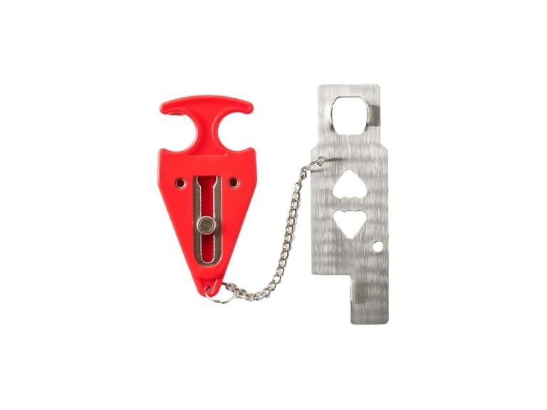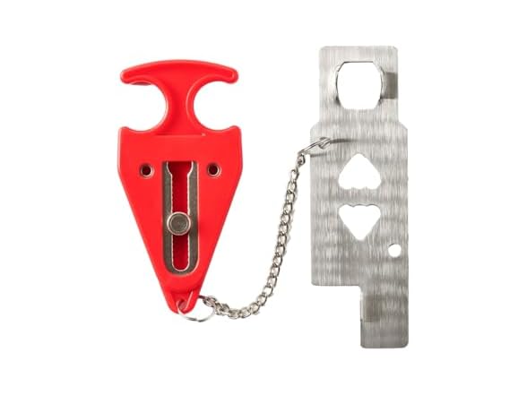 - Compact & Lightweight: The Door Guard is made for on-the-go use — it’s small enough to fit into a purse, backpack, or even a pocket. 4 ounces, 5 1/8” x 2 1/8”.