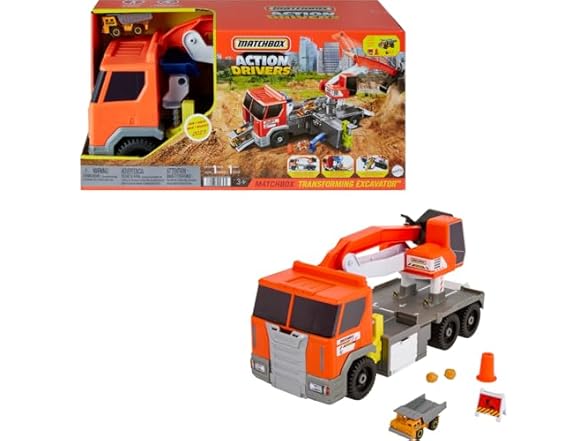 - Matchbox Cars Playset, Action Drivers Transforming Excavator, Large Toy Truck, 1:64 Scale Construction Vehicle & 4 Accessories
