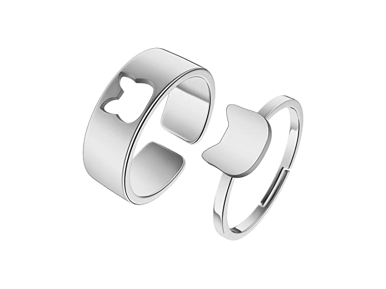 - (1) Chereda 2PCS Matching Cute Animals Promise Engagement Rings Lovers Gift for Couples Boyfriend Jewelry 316L Stainless Steel Adjustable Open Ring (Cat-s, Adjustable)